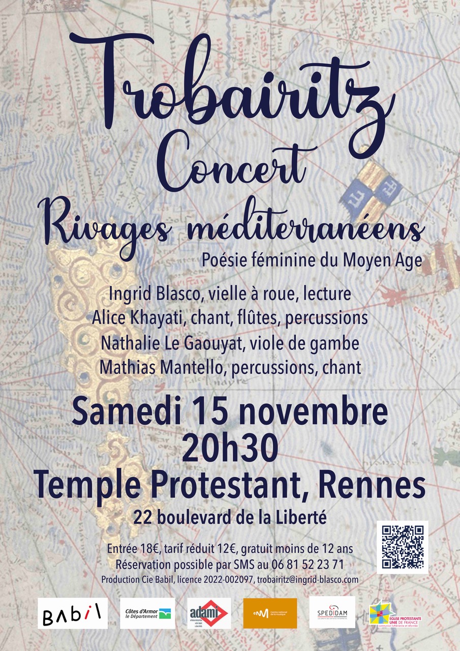 L'ensemble Trobairitz revient cette année encore au Temple protestant de Rennes tourné cette fois-ci sur les musiques méditerranéennes.