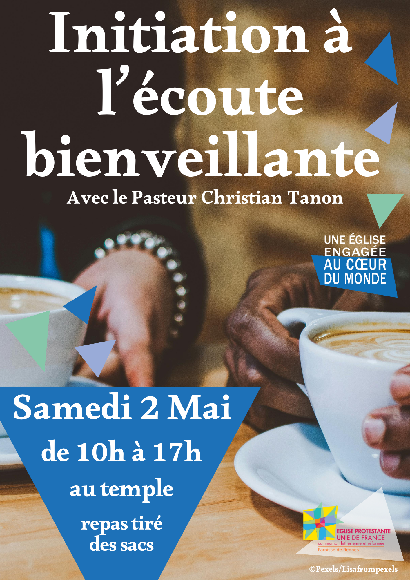 Cette journée, animée par les Pasteurs Christian Tanon et Claire Oberkampf, s’adresse aux paroissiens qui attachent de l’importance à la qualité de l’accueil des nouveaux venus au culte, à leur accompagnement éventuel au sein de la paroisse, à l’accueil et l’accompagnement des bénéficiaires de l’Entraide dans une dimension spirituelle, et plus généralement à celles et ceux qui veulent améliorer l’écoute du prochain en toute circonstance de la vie.