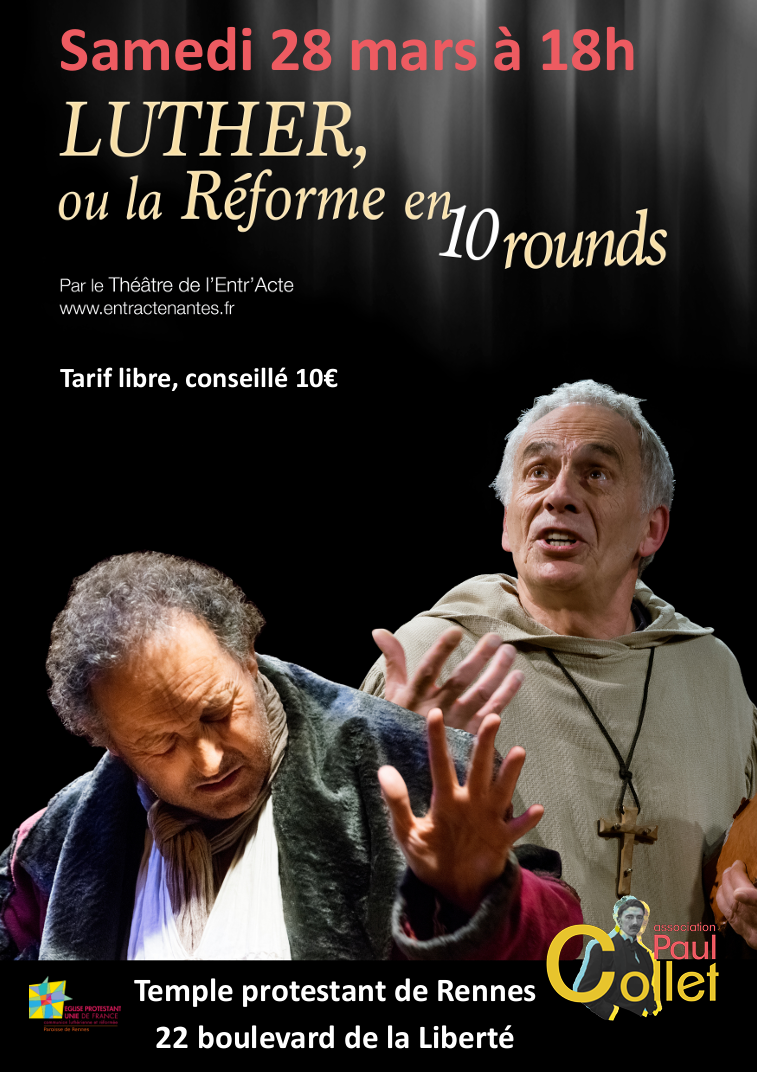 L'association Paul Collet vous invite à assister à une joute théâtrale entre Martin Luther et Jean Tetzel, interprétée par la compagnie du Théâtre de l'Entr'Acte.