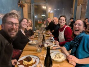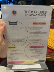 Après avoir participé à « Téospi » animé par Darius, pasteur proposant à Grenoble, nous sommes sortis nous balader dans la ville de Grenoble tout en continuant à échanger avec Mireille et Marianne. Vendredi soir, nous avons été invités au restaurant et avons rencontré Esther, présidente du Conseil presbytéral et Rosine, animatrice référente et salariée de chez Téo. Celle-ci n’était pas disponible plus tôt car elle bénéficie d’une formation à la gestion de projet, une semaine par mois.